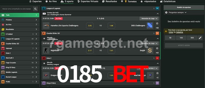 O 0185 Bet oferece uma grande seleção de opções de apostas em e-sports com probabilidades competitivas